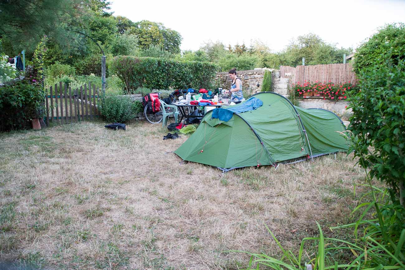 After Epernay, we had a long 85-mile day, which mostly followed a canal-side bike path. After a very long and tiring day, we struggled to find a camping spot, so we asked some villagers if they knew anywhere to pitch our tent. We were astonished and incredibly grateful to Marylène, who invited us to camp in her garden. She offered us showers, drinking water and even vegetables from her garden!