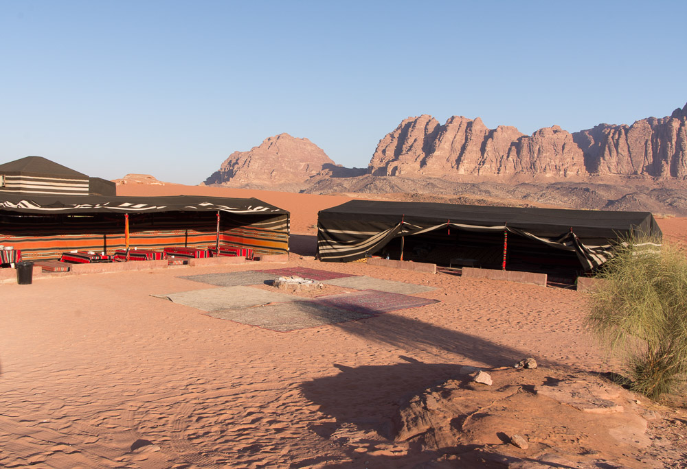 From Petra it was back on the road – 100km to the desert at Wadi Rum. We arrived at the visitor centre where you go to pick up your park permits and before long we had been whisked away across the desert in a 4×4 to our Bedouin Camp where we would spend the night. Wadi Rum is beautiful and unlike anywhere that I have been before – the sand is a striking red and pink colour and you do feel like you are on Mars – it’s no wonder that it has been used as the set of the new Matt Damon film, The Martian, which we believe is out at the cinemas at the moment. We had a great night under the stars and I saw the milky way for the first time properly while James took photos (if you are reading this Kev, apparently the photos are not quite good enough yet as James says that the wind was wobbling the tripod) but I have no doubt we will get lots of practice elsewhere.