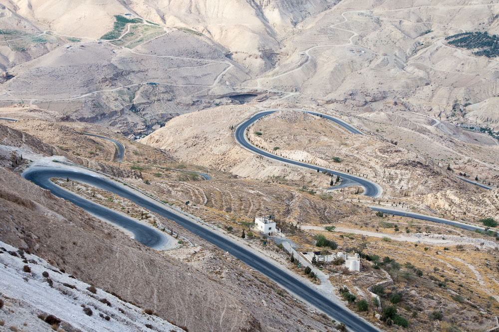 It was one of those roads that you dream about at home when you are watching the TV and see people cycle/drive down epic switchbacks with stunning views. That is, until you are sat at the top of one side of the canyon contemplating the road ahead – it was incredibly daunting with all the weight we are carrying on our bikes. Riding up steep, lengthy climbs like this on our touring bikes often reduces us to 5kph which is very painful indeed but we survived in one piece. Once you get into a rhythm it’s just a matter of switching off and surviving, knowing full well that it’s only a matter of time before you will eventually reach the top – and reminding yourself that if you stop, it will be much harder to walk up than cycle. Luckily we chanced upon a café near the top where we stopped to top up our water and enjoy a tea with an incredible view. It was an incredibly long day and by the time we arrived in Karak the sun was setting.